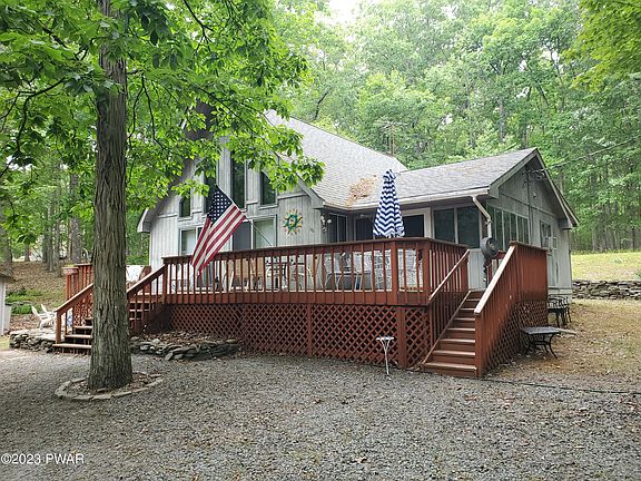 FAWN LAKE CHALET! MOVE IN Ready Chalet style home nestled privately on a wooded and manicured parcel with no close neighboring homes. Features a wide open floor plan with 3BR plus a spacious loft, full bath, laundry, 3-season room, roomy deck, oversized shed / workshop w/ A/C and a dry crawl space basement w/ concrete floor. Upgrades include wood flooring, Brick Hearth wood-burning stove, wall & window A/C and a newer roof installed in 2020. Great home in a great year round community with indoor / outdoor pools, 2-lakes (one for motorboats & jet skis), white sand beach, clubhouse, beach house cafe, picnic grove, indoor / outdoor sports courts, gym, mini-golf and more. Plus skiing is just a few minutes away at Ski Big Bear. Offered partially furnished so you can move right in for Summer!, Beds Description: 2+Bed1st, Baths: 1 Bath Level 1