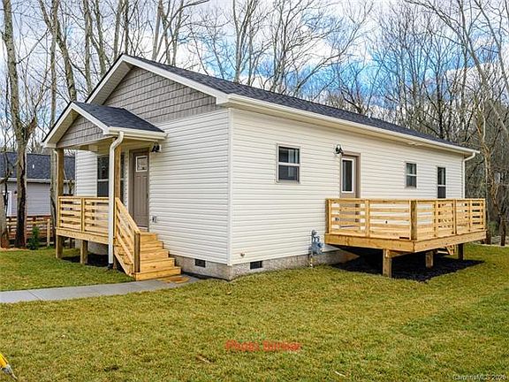 Brand New Construction: 3 bed, 2 bathroom cottage on a quarter acre with vaulted ceilings, wood floors, granite counters, stainless appliances, open floorplan, gas fireplace, master bedroom on main, laundry closet on main, off street parking, covered front porch, side deck, bordering creek/stream and convenient to West Asheville. 10 minute drive to downtown. One-year builder warranty included.