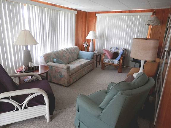 This move-in ready home is waiting for you! With almost 800 square feet of living space, this nicely furnished home has a large enclosed lanai adjoining the living room making for a large living space. Lots of cabinet space in kitchen and roomy bathroom make this home a must see. Make this home your residence or investment property as renting is allowed. Seasonal rentals are popular in the community. Purchase only the home and lot rent is $705 monthly or purchase the share for $57,750 and monthly fee is only $255. Monthly fee includes trash removal, recycling, water/sewer, lawn mowing and edging. Orange Harbor is an over age 55 resident owned community located close to shopping, restaurants and beaches.