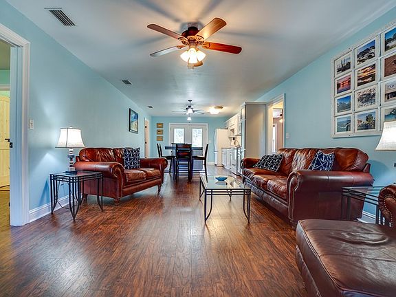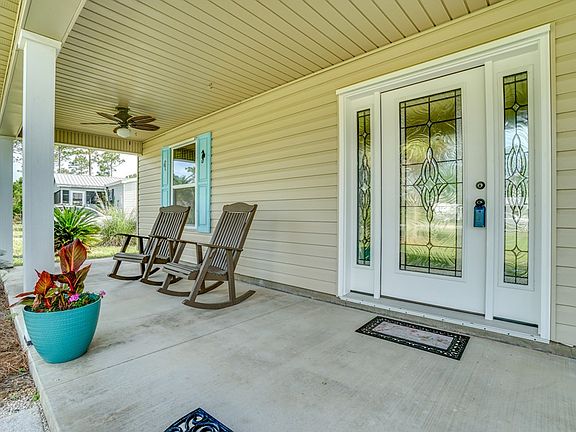 Beautiful home in impeccable condition. Located in a quiet subdivision just outside the city limits. This 3 bedroom 2 bath is updated and move in ready! You will love the spacious bedrooms in a split design with master suite on one side of house and guest rooms on the other! Open concept living, dining and kitchen with large - 4 seat breakfast bar on the island. Engineered wood flooring and comfortable furnishings and decor. Lovely wide front and back porches to enjoy the crickets and the quiet. Yard is landscaped and has a covered carport 24x36 to house an RV with water/sewer/electric hookups. All furnished. A perfect beach house without the beach house high maintenance and price. Owner built with standing seam metal roof. Insurance is under $1500 a year.