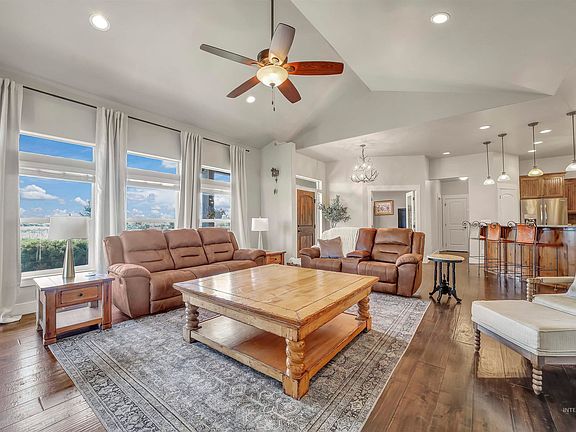 Discover a remarkable custom home on 5.66 acres, nestled between Twin Falls and Hailey. Enjoy the serene canal and stunning views of the Pioneer Mountains. Relax on the covered front porch or the wrap-around back-covered patio, accessible from the master bedroom. This open and functional floor plan features a bright and vaulted great room, perfect for entertaining. Stay cozy with the efficient heat pump and wood pellet stove. The 3-car garage, storage sheds, and 30'x40' shop with electricity and a wood stove provide ample space for vehicles and hobbies. 30 and 50-amp RV hookups are available for added convenience as well as a professionally installed transfer switch for backup power. Enjoy pristine water quality thanks to the exceptional well-filtration system. The lush yard features mature trees, shrubs, and a charming firepit. This extraordinary property must be seen to fully appreciate its beauty and potential!