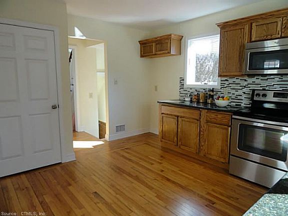 Happy Spring! You will be dazzled by this remodeled Mt. Carmel 3 bedroom colonial home. Gleaming hardwood floors throughout and two full bathrooms to accommodate everyone's needs. This house has an open floor plan for all your entertaining dreams. In a few short weeks it will be time to take the party outside....no worries here....this house has both a front porch and rear deck! The remodeled kitchen has granite counters and a new stainless steel dishwasher, microwave, and range. There is a living room and a family room on the main level. The family room has a cathedral ceiling and a floor to ceiling stone faced fireplace with a raised hearth. A brand new roof, new siding, and new thermopane windows wrap this house in style! There is a room in the basement that has heat and would make a great home office or play room. Conveniently located to the connector and access to I91 and rte 15. You will not be disappointed, please call Kim for more details or a private showing.