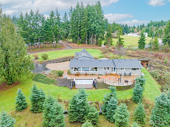 Explore this updated 2100 sq ft rambler situated in a sought-after location on Penrose Lane in Adna. The home features updates and rests on 2 acres, offering a living area that is luminous and inviting, providing scenic views of your private acreage. Step outside onto the beautiful concrete patio featuring a swim spa, and further, revel in the luxury of a private covered patio with a hot tub. Additionally, the property includes a 4-car garage with a loft area that serves as a versatile space, potentially functioning as a guest room. This remarkable property is a must-see, presenting a harmonious blend of thoughtful updates and the peaceful ambiance of its surroundings.