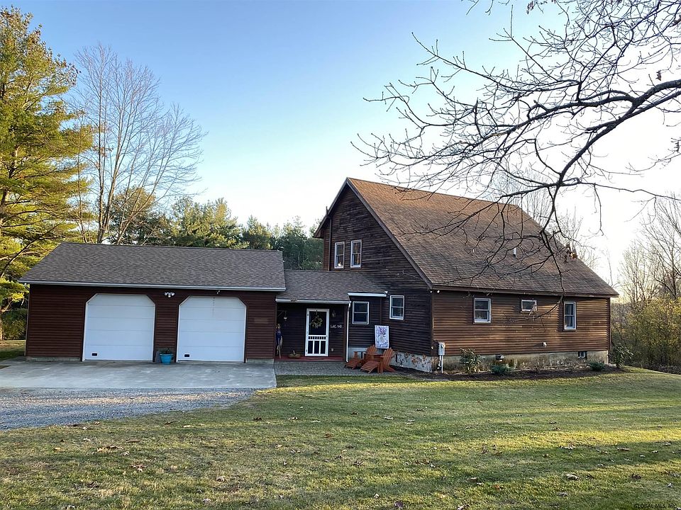 Looking for a unique, rustic home with a serene setting? Here it is~ Vaulted 2 story sun-filled great room with open floor plan. Beautiful post and beam construction with a private, picturesque back yard. Many updates thought out including flooring, appliances, water softener, lighting, paint, faucets, hardware and more. Finished basement rec room with built-in cabinets and space for crafting. Just a short stroll to the Tomhannock Reservoir for fishing. Heated garage. Taxes w/o Star.