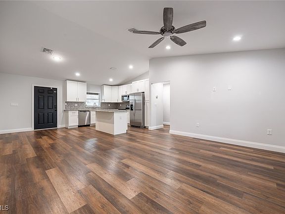 This stunning modern residence in Banyan Village offers 3 bedrooms and 2 full baths across approximately 1,504 sq ft of living space, recently built in 2023. As you step inside, vaulted ceilings draw your eye upward and flood the living areas with light, while hurricane-impact windows and doors plus spray foam insulation deliver energy efficiency and peace of mind. The kitchen is a chef’s delight, featuring stainless appliances, granite countertops, a decorative backsplash, island seating, and a breakfast bar. The primary suite includes a walk-in closet and dramatic floor-to-ceiling tile in the walk-in shower. Two additional bedrooms enjoy ceiling fans and share a well-appointed bath. A tankless water heater and split floorplan add convenience and comfort. Outside, the east-facing home sits on a 10,018 sq ft lot with a covered front porch, open patio, and plenty of yard space for garden, pool, or outdoor living. A 2-car attached garage, concrete block construction, metal roof, impact glass, and no HOA round out the appeal. Just 10 minutes from downtown LaBelle, you’ll enjoy country tranquility with easy access to local amenities.