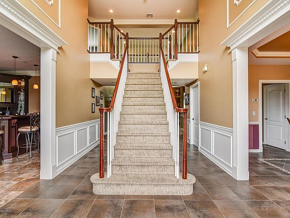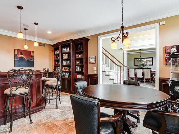 Gorgeous 5 Bedroom Colonial with Numerous Custom Upgrades. Owners have spared no expense. Two Story Entrance with Therma-Thru Leaded glass door with Side lite(s, Transom and Palladium Window. Crown Moldings, shadow boxing, and Chair Rail(s) throughout. Custom Mahogany Bar with Mahogany Wainscotting, Chair Rail and Bookcase. Wine Cooler. Built in Speakers: Bar, Conservatory, Kitchen, Master Bedroom. Conservatory with tray ceiling, Custom Window Treatments, Formal Dining Room with Ceramic Tile floor, Chair Rail, Tray Ceiling and Crown moldings, Custom Window Treatments (Silhouette Blinds). Two(2)Story Family Room with Skylights, Gas Fireplace with Oak Mantle and Marble Surround.