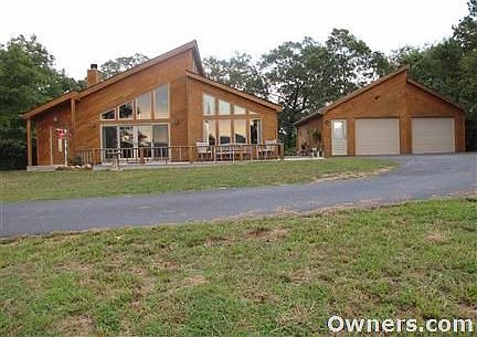 Single Family Home for sale by owner in Mena, AR 71953. House for sale with approx 5 Acres fenced--$179,000- 8 miles from Mena Hwy 8 west-1/4 mile off highway. House completed in 2008---1700 sq ft 2 bedroom-2 bath, with loft overlooking living room. Detached 2 car garage with vaulted ceiling-clerestory windows and bath. Cypress siding Vaulted living room with Cypress ceiling, Anderson 9 ft sliding door, clerestory windows, wood burning rock fireplace, Arke spiral staircase to loft, vertical blinds, remote control shades. Vaulted master bedroom with walkin closet. Large master bath has whirlpool tub and separate shower Vaulted kitchen/dining room . Stainless steel all digital slide in range and dishwasher included. Island bar, beautiful wood cabinets. Special lighting and ceiling fans thru out- Separate utility room with shelving. Dupont laminate flooring in living room and kitchen--Anderson wood windows Composite