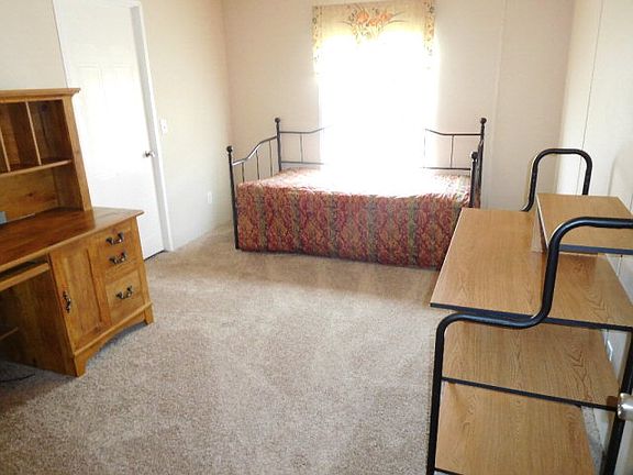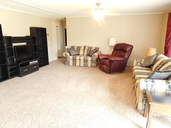 Very nice Fleetwood double wide manufactured home (De-titled) on Permanent Foundation. Features spacious great room with fireplace; large kitchen; new carpet throughout; extra refrigerator and washer/dryer to stay. Large Mud Room. Situated on 1.33 Acres (double lot) with mature fruit trees. 12X24 Out Building with electricity. All Underground Utilities. Large concrete and Brick Front Porch. 22x21 ft carport in back.