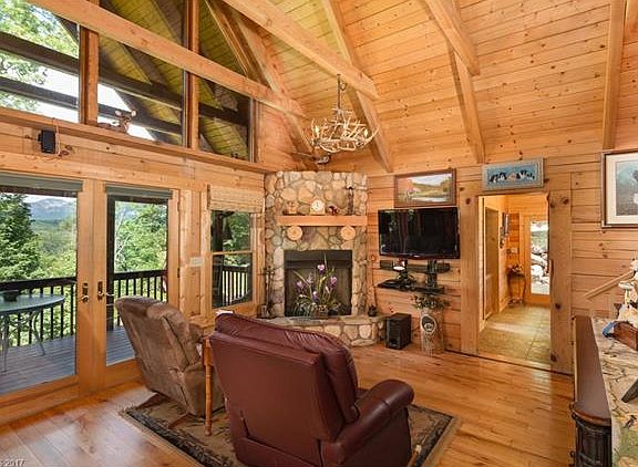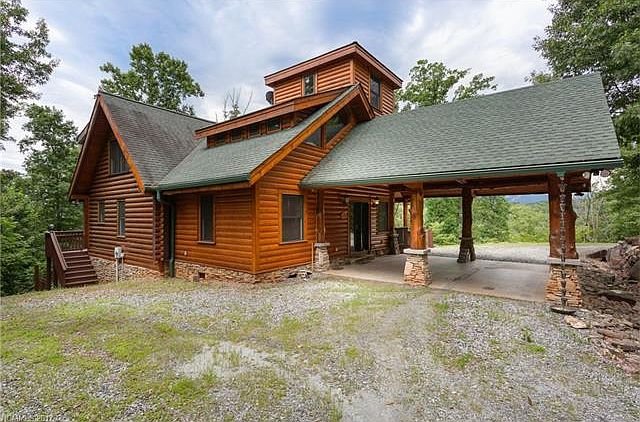 This unique log cabin offers views of the Hickory Nut Gorge, Chimney Rock & Mirror Lake. Master BR Suite on main floor. Kitchen completely renovated. The Great Room has a gas fireplace & opens up to the covered deck. Two separate lofts can be used as bedrooms, offices or as an artist studio. A circular staircase leads to the tower room library. Main Floor Sunroom is perfect for relaxing. Large Hemlock posts highlight the carport and entrance to the home. All set on just over 2 acres. Must see!