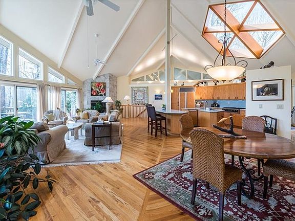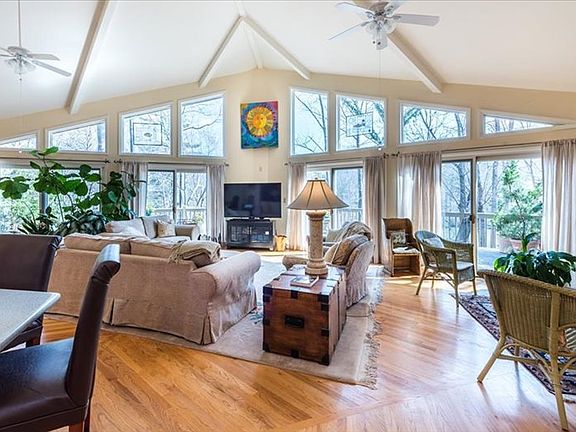 This Unique, High Quality, Elegant Lake Front home is flooded w/natural light for a bright interior! This home offers high vaulted ceilings w/an enormous Skylight! Very open concept w/ wall of glass doors to take in the lake & mountain views. 2 oversized master suites on the main level w/ sitting/sunrooms, walk in custom closets & beautiful master baths. The finished terrace level offers recreation room/ Wet Bar/ 2 additional BRs&BA.Enormous decks on upper & lower level/fenced backyard/amazing landscaping and ornamental trees/level circular dr. Steel Reinforced Const.