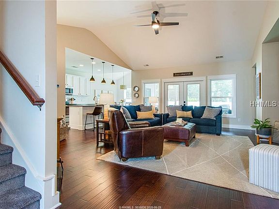 Stunning WOODROW MODEL with super low HOA fees! Upgrades galore-too many to list. The kitchen is straight out of a magazine with quartz counters, large island with sink, subway tile backsplash, upgraded lighting, shiplap, moldings/trim & 5 inch hand scraped wood floors. Spacious owners suite with tray ceiling, his & hers closets and tranquil owners bathroom. Upstairs boasts a 4th bedroom with closet & full bath; makes a perfect hideaway or guest suite. Privacy fence with wooded views, manicured yard, patio & fire pit. Everything in this home is meticulously kept, even the garage is neat as a pin. GREAT central location. May River zoned.