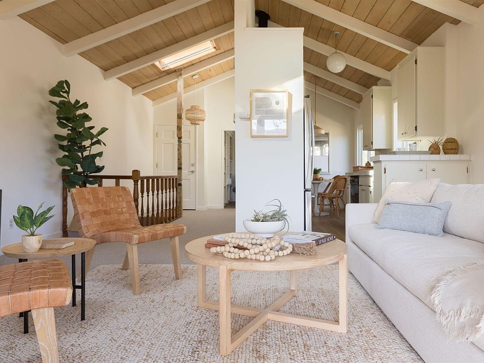 - Features: Cathedral/Vaulted, Deck Attached, Open Beam Ceiling, Skylight(s), View