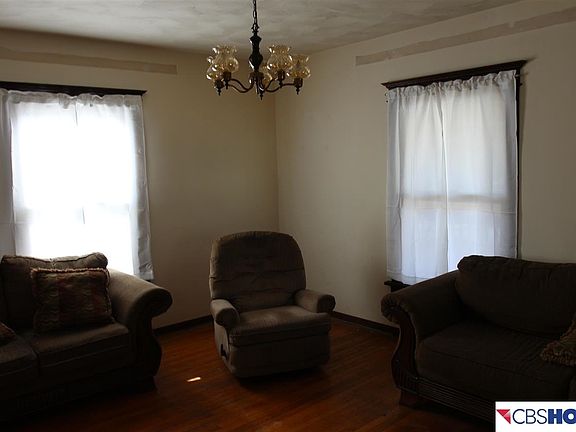 Small town living. 1.5 story home. Features include newer siding, roof/gutters, heat & AC. New front porch with new exterior doors. Master bedroom with his/hers closets. Main floor laundry. Hardwood floors in living & formal dining rooms. Lots of character.
