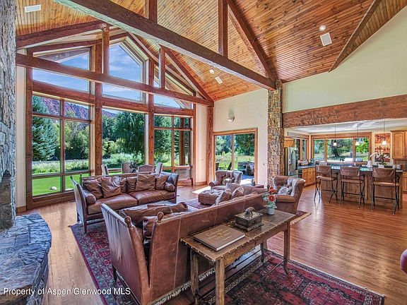 Welcome to this magnificent 6 plus bedroom home on the Roaring Fork River. This idyllic family home has a ''lodge-like'' feeling nestled in a private magical setting within the gates of Aspen Glen on the Roaring Fork River. Gold medal fly fishing at your doorstep, abundant wildlife and expansive entertaining spaces encompassing the beauty of nature at every angle.