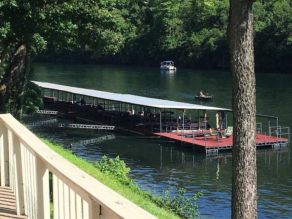 LAKEFRONT TANEYCOMO CONDO. 2 bedroom 2 full baths, decorated in lodge style, this condo is great for permanent or vacation home. Also has an extended deck on back overlooking the lake. WALK IN - NO STAIRS with all tile floors for easy mobility. Seller invested $ 6000 for new Walk In Shower. Walk to your Boat slip which is INCLUDED in community dock behind condo . Tennis court, swimming pool, community center and boat trailer parking. Only 39 units in complex with no nightly rentals. Located within 3 miles of Lowe's and 2 major grocery stores and 5 miles to Branson shows and attractions. Refrigerator, Washer, Dryer is included.