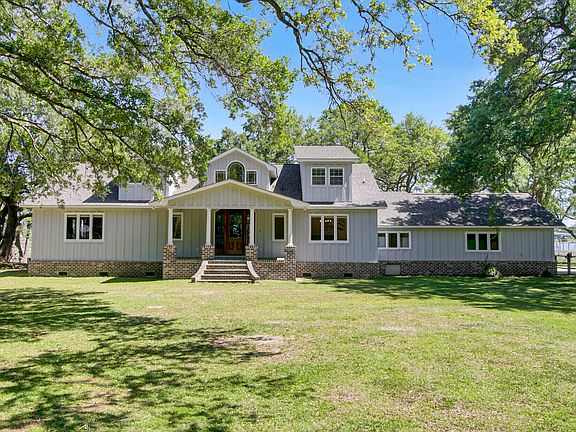 A rare opportunity to own an exceptional deep-water estate on1.13 acres with panoramic views from three sides of the home. Arguably one of the best lots on Clements Ferry, this stunning property is framed by a private drive lined with more than 20 grand live oaks, leading to an unmatched waterfront setting.Step through the custom oval front door and be greeted by breathtaking water views from the foyer. Inside, exquisite woodwork, rich hardwood floors, and high-end trim add warmth and character throughout. The spacious family room features a striking rock wall fireplace--perfect for cozy sunset evenings. A sun-drenched four-season room offers floor-to-ceiling windows, inviting the outdoors in.Designed for entertaining, the gourmet kitchen is a chef's dream, boasting expansive stone countertops, a custom bar area, and premium appliances, including a 60" range, top-of-the-line refrigerator, double ovens, two dishwashers, an ice maker, and more. The primary suite on the main floor provides a serene retreat with space for a sitting area, a luxurious en suite bath with a spa-like shower, jacuzzi tub, dual granite vanities, and a walk-in closet. A second bedroom with a private bath and walk-in closet is also on the first floor. Upstairs, a custom spiral wood-and-iron staircase leads to an 890 sq. ft. suite, offering a bedroom, bath, and versatile flex space perfect for a media room, game room, or additional bedroom/office. Designed to embrace the waterfront lifestyle, the home is filled with natural light and unmatched water views. Relax on the dock, take in the vibrant coastal wildlife, or enjoy the tranquility of the Wando River. This is a rare chance to own one of the last deep-water estates of its kind in Charleston. Schedule your private showing today!