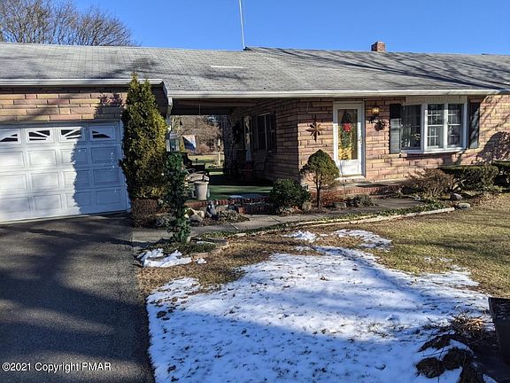 This 3 bedroom 2 bath home boasts large bedrooms, 2 separate garages(one is 24 x 28), full basement, new furnace , brick front on a corner lot. It is zoned VC for residential or commercial use. Great location near all Pocono amenities(Water parks, restaurants, skiing, and shopping). Bring your Family or bring your company either way its your business come and see today.(WR)