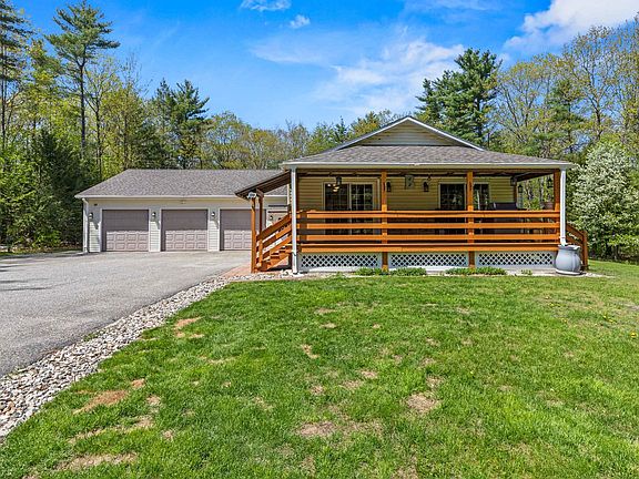 Welcome to 146 Rowe Station! This meticulously maintained home offers the utmost privacy on 8.48 acres. Inside, you'll find 2 bedrooms with a shared bathroom and a primary bedroom with a spacious bathroom, and an open-concept living space. Outside, enjoy a serene country setting complete with a beautiful fire pit and gardening area. For hobbyists and those needing extra space, the property features a stick-built, fully insulated attached garage with high ceilings and a recently added top-of-the-line Hot Dawg propane heater - perfect for woodworking, extra car storage, or a tool shop. The location offers convenient access to amenities, with tennis, basketball, and baseball fields within walking distance, the beautiful Pineland Farms just 10 minutes away, and Crystal Lake a quick five-minute drive. For those looking for city access, Portland is only a 35-minute drive. Call today to schedule your private showing!