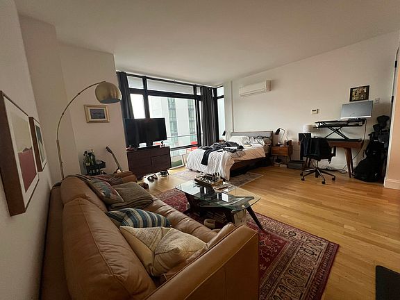 Unit features: Galley Kitchen with stainless steel appliances, including a dishwasher and microwave with granite counter top and chrome tiles Spa-like tiled bath with deep soaking tub High ceilings with floor to ceiling windows Hardwood floors A/C & heat split units Video intercom iPod dock and embedded speakers system Included Amenities: 24/7 Doorman with package hold Fitness Center Resident Lounge with pool table, seating, TV Landscaped roof deck with BBQ grills and views of Manhattan, Williamsburg Bridge and East River Laundry Room Bike Room Parking (for additional fee)