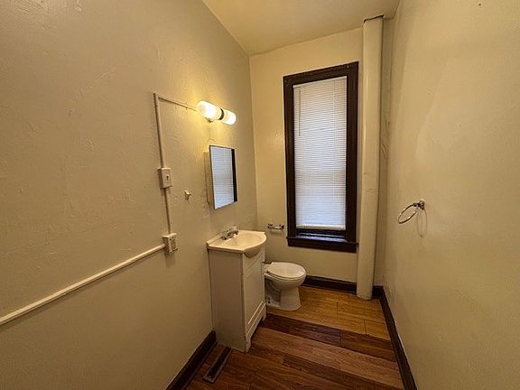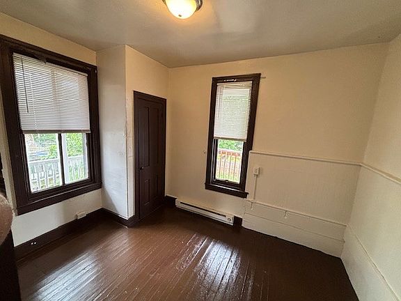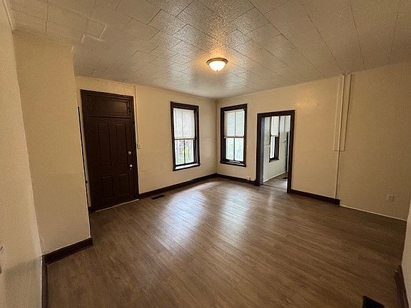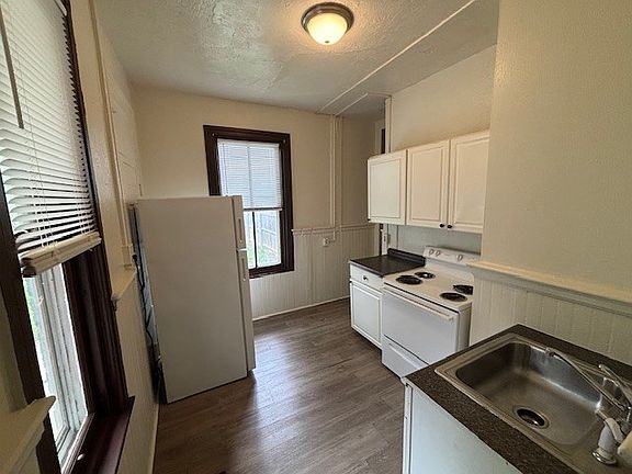 Two-story unit features 2 bedrooms and 1 and 1/2 bathrooms, living room that flows into the kitchen which is equipped with an electric stove and refrigerator. Access to shared back yard/common area. Tenant is responsible for lawn care, snow removal and weeding as needed. 1 off-street parking space in the lot across the street. 12 Month Lease Tenants Pays Electric and gas 1 off street parking space in the lot across the street Tenant is responsible for lawn care, snow removal and weeding as needed