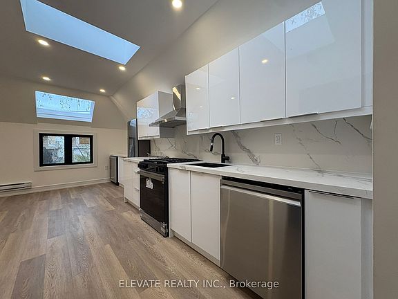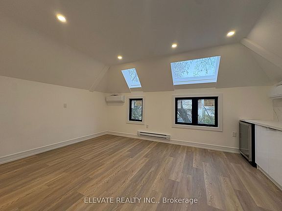 Experience refined living in this brand-new, thoughtfully designed garden suite located in the heart of the Junction. Filled with natural light from vaulted ceilings and multiple skylights, the home offers an airy, open-concept layout that blends comfort with modern style. The contemporary kitchen features stainless steel appliances and a built-in wine fridge, complementing the spacious living area ideal for both everyday living and quiet relaxation. The generously sized bedroom is paired with two beautifully finished full washrooms, including a luxurious walk-in glass shower. Additional highlights include in-floor and ductless heating/cooling, a private entrance, and a serene setting surrounded by mature greenery. A rare opportunity to enjoy a peaceful, private space with high-quality finishes throughout.