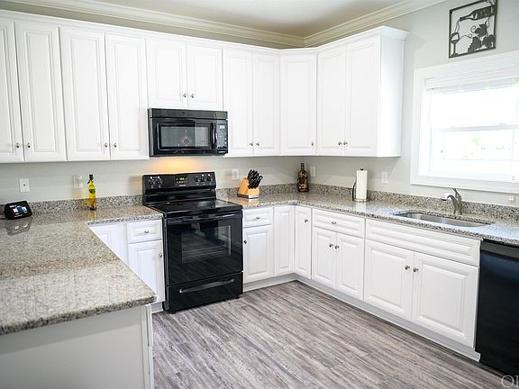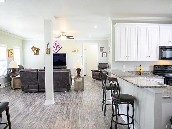 Looking for a 'like new' home without going through the building process?? Here it is! This open concept, custom built home, completed in 2022, is in pristine condition. In addition to being minutes from a public boat ramp and the Outer Banks, it has so much to offer! Situated on a 1.1 acre corner lot with water views, this 2000+ square feet home has so many upgrades; custom cabinets, granite countertops, crown molding, matching appliances, walk-in pantry, covered front and back porches, HUGE floored attic with massive amounts of storage, 50 amp electrical for RV, concrete pad for RV, and more! There are 3 bedrooms downstairs and a FROG/4th bedroom upstairs. Must see! Won't last long!!!