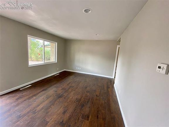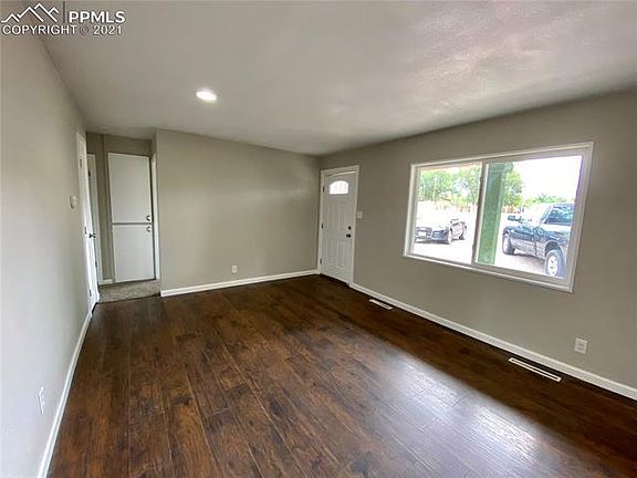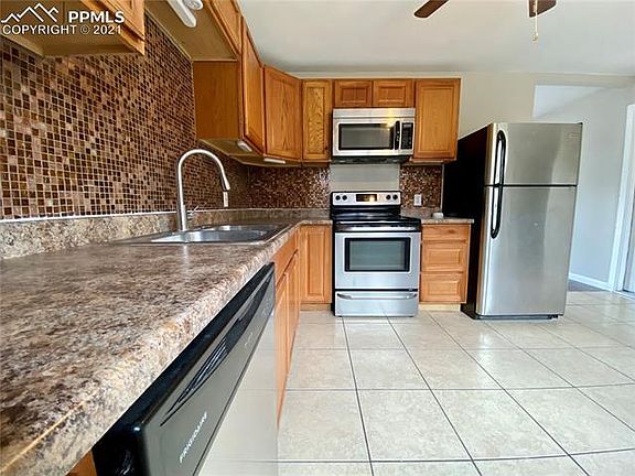 This stucco 2 bedroom, 1 bathroom 1 car attached garage rancher sits on a large lot and was recently renovated to include new carpet and pad in the bedrooms, new linoleum in the extra large laundry room, fresh paint on trim and doors plus new drywall texture and a new tub. As you enter the home, you are greeted by a spacious living area complete with laminate flooring and a large window. Just off one side of the living room you will find access to the 2 bedrooms and the full bathroom and on the other side you will find the kitchen which features stainless steel appliances, tile backsplash, and access to the enormous fenced in backyard. You will also find the large laundry room with washer and dryer included in the sale and access to the 1 car garage. This home has also received a new roof in December of 2019 and it's located near shopping and fitness centers and quick access to I-25 and Fort Carson. Don't miss out!