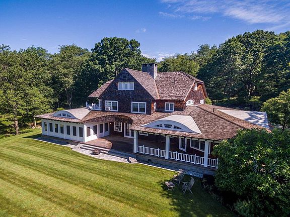 Hilltop retreat. A rare and special offering in the Clove Valley, one of the most sought after areas of the Hudson Valley. This 10,920 square foot house built in 1993 was designed by noted architect Paul Gleicher in the Arts and Crafts style. It is surrounded by 144 acres and sited high on a hilltop at the end of a long driveway with scenic mountain views. The house is totally secluded and quiet featuring all the essentials of a quality life style. Built to the highest standards with generous spaces, light and sunny rooms, cozy in winter with a log burning fireplace and with wide cool porches for summer living. There are three floors. The large master suite on the second floor with a private balcony looks south to a layers of distant hills. The private guest wing is on the ground floor. The third floor has studio and playroom space as well as an extra bedroom and bath. There are 5 bedrooms in all. A 5 bedroom guest house completes this very private domain, less than 90 minutes north of New York City.