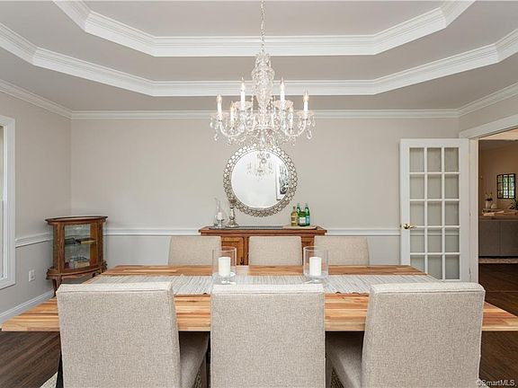 Situated upon an elevated parcel on a quiet coveted cul-de-sac in ideal lower Greenfield Hill this four to five bedroom timeless colonial with elevated finishes is conveniently located in NYC's backyard offering a country retreat-like setting while just minutes to everything. Feel right at home upon entering this stately structure as you are embraced by a two story foyer flanked by an inviting formal dining room on one side and comfortable sitting room or office on the other. Step further into this custom luxury home and enjoy the sun flooded chef's kitchen overlooking with access to the backyard oasis. Let the gathering spill into the great room with soaring ceilings, streaming sunlight and stone fireplace with access to the outstanding back deck on one end and French doors on the other leading to a distinguished home office outfitted with custom built in cabinetry and extensive millwork. The second level boasts the expansive owner's suite with cathedral ceilings, room for a sitting area, spa like bath and walk-in closet. The level is completed by three more well appointed bedrooms, one with en-suite bath, two with a shared bath. The third level offers tremendous finished space serving as a functional home office. The lower level provides a fifth en-suite bedroom, family room, wine cellar and billiard room. Indoors and out this property offers many places and spaces to soak up the private serenity of a true country retreat where any season feels good to be home.