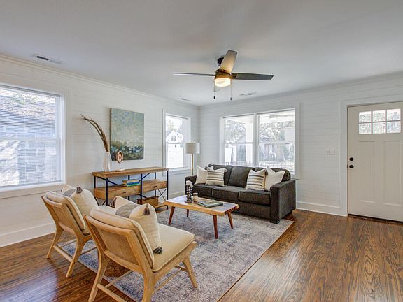 This is a wonderfully renovated Wagener Terrace home in a great location with a large .19 acre lot bordered by a nature area for extra privacy. This home also has a separate one car garage. Because of the size of the lot, there may be an opportunity for an adu, buyer to verify. This home has a large welcoming front porch with brick accent flooring. Inside, the home has a modern, open floorpan that is great for entertaining. The whole living area/ dining area has shiplap siding, and is open to the all new kitchen with a large center island. Off the kitchen is the laundry area/mudroom with nice built-in accents and a brick accent floor. The master bedroom has wood walls and ceiling, and a new master bath with a walk-in closet, tile floors and shower, ship lap accent, and a double vanity.There are two more bedrooms and a 2nd bath with tile floors and tub surround, shiplap accents, a new vanity, and built-in shelving. The house has pine floors, smooth ceilings, fresh paint inside and out, a new architectural shingled roof, new hvac, new water heater, new windows, all new 5 panel doors, new fixtures and hardware, a deck in back, and much more. There are lots of nice houses in this area and because of the natural area to the side and the large lot, you do not have that cramped feeling like in many downtown homes. Also, there is plenty of room if you have a boat or other vehicles that require a lot of space. This home is also within a short distance to plenty of great restaurants, Hampton Park, and shopping. Listing agent is related to seller and has an ownership interest in the home.