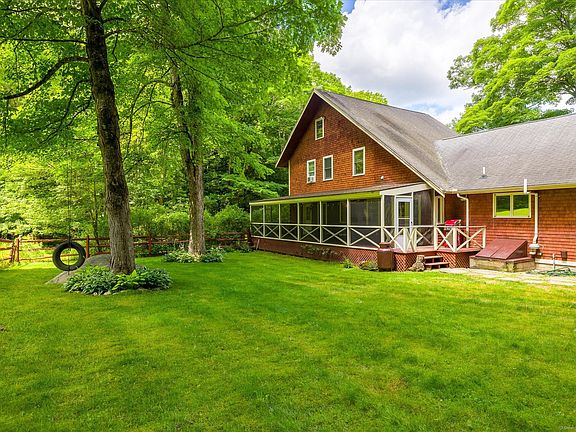 Dream come true for horse lovers It features a 4-stall barn with full loft suitable for hay storage or gatherings. The 6.5-acre property also offers a huge dressage arena. Located just 0.3 miles from the Natchaug State Forest- it's perfect for equestrians. Explore the scenic beauty of the surrounding area on horseback, with riding trails through open meadows, dirt roads, and lightly forested areas. The barn has a tack room, washroom with drain and each 12'x12' stall exits direct to pasture . The custom-built saltbox home boasts an open floor plan, a great room with 10' ceilings, a movie screen, and beautiful wood floors. The home itself has 4 bedrooms and 2.5 baths, including a luxurious third-floor primary suite with a full bath & whirlpool tub. The open floor plan features a large, updated kitchen with cozy fireplace & dining area that flows into the living area with vaulted ceilings, making it an ideal space for entertaining. A gorgeous screened-in porch at the back of the house provides a peaceful and tranquil retreat. Hidden above ground pool with decking to enjoy in warm weather. Additional features include a babbling brook, a chicken coop, and new leased solar panels. Generator, Close to UCONN & I 84. 30 minutes to Hartford. Great Shopping & restaurants close by.
