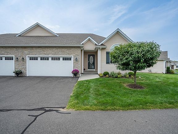 Welcome to Stonybrook Village, a desirable pet friendly community open to people of ALL ages with the bonus of single level living perfect for aging in place! You'll feel at ease as soon as you walk into this stellar garden style unit, featuring an open floor plan, great closet space & natural light galore! The living room offers a gas fireplace & cathedral ceilings and opens to the elegant dining room w/ tray ceiling & access to your own patio! The sizable kitchen has a center island, granite counters, SS appliances, a dedicated pantry, a 1st floor laundry room & access to the 2 car garage. The primary bedroom suite offers a double tray ceiling, a massive walk-in closet, & an en-suite bathroom w/ double vanities & a walk-in shower. A guest bedroom & full bath complete this level. The lower level offers a large bonus room, perfect to suite any type of hobby! Ideal location less than 2 miles to Mt. Holyoke College & the town center, natural gas heat, and central air make this a winner!