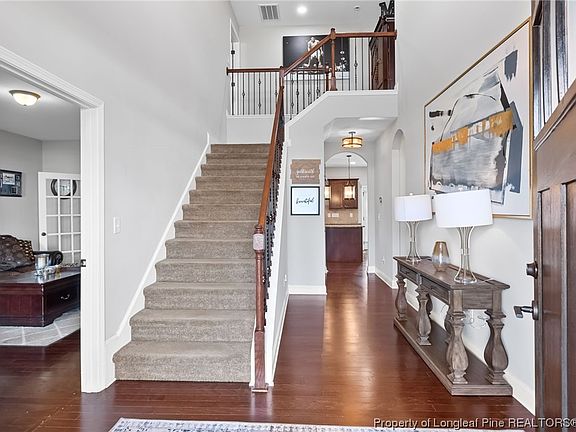 -Enjoy beautiful lake views from this gorgeous home situated in the highly sought after Community of Carolina Lakes. There is a gas cook top, double oven and spacious kitchen that is opens to family room. In the Family room there is a custom fireplace thats perfect for those cold nights. This open floor plan features 2 staircases !! This home has a guest bedroom with full bathroom downstairs. Master and other bedrooms are upstairs. Come and enjoy community pool, 7 lakes, beach area and more...