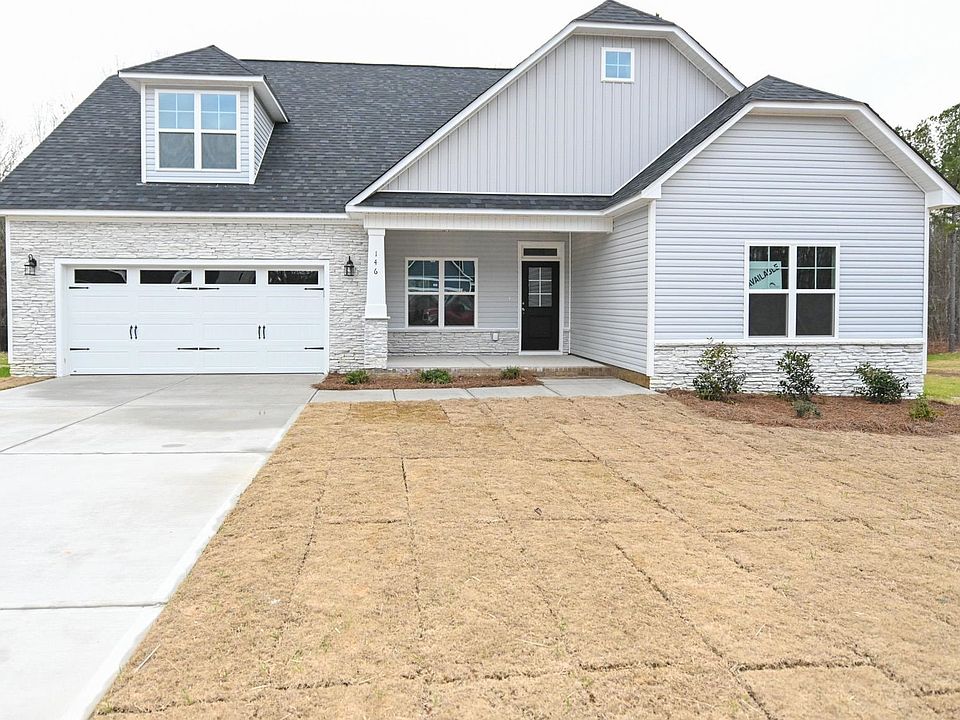 The Brookside is a 1.5 story home with an open living design. The family room opens to the kitchen w/ quartz counters, tile backsplash, & stainless steel appliances. Beautiful Dining Room w/ designer trim work. The Owner Suite is located on the main floor & includes a large bathroom w/ garden tub & separate shower. Two other bedrooms are located on the main floor w/ a full bath between them. Upstairs boasts a large bonus room, full bath, & walk in storage. Welcome Home!