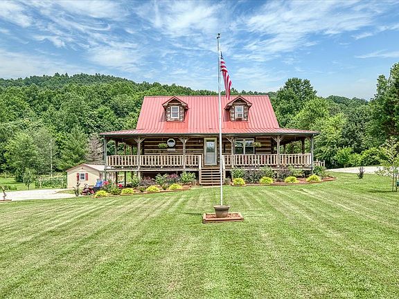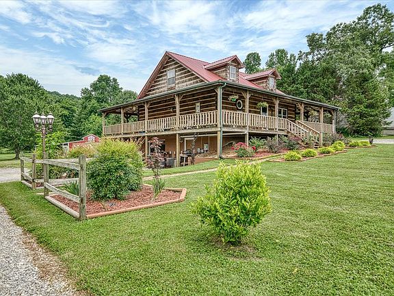 Lil "Peace" of Heaven perfectly describes this turnkey, hobby mini-farm! You'll love every feature of this beautiful well kept homeplace- Honest Abe log home with full basement, breezy covered wrap around porch, 2 acres unrestricted lane, 1 bed/1 bath guest house, adorable barn w/chicken coops and critter quarters, precious "she shed" greenhouse and bountiful garden spot. Even space to fence off for your cow and pony. Interior features-main level master suite, living, dining & kitchen (half bath for guests). Upper hosts 2 bedrooms and full bath. Full basement for car storage and workshop. Patio fire pit will be a FAV hang-out! Beautiful grounds, just minutes to town for shopping and healthcare. You will fall in love with this beautiful affordable property.