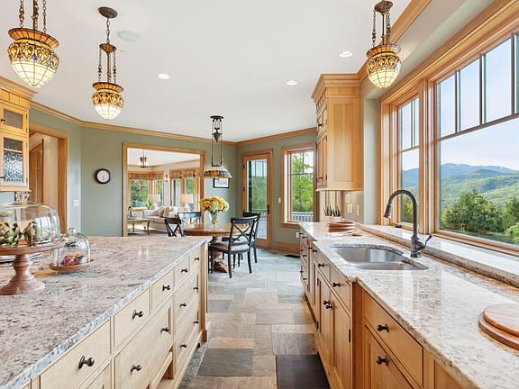 Welcome to "View Point", a luxurious mountain retreat in Jackson, NH, built by renowned local builder Tamarack Construction. This custom home offers over 5,800 SF on the main levels plus a 2,000 SF finished walkout lower level, all designed to maximize comfort, elegance, and sweeping views from Mt. Washington to Black Mountain. The main living area features a striking granite fireplace, complemented by a cozy library with a second fireplace. The expansive kitchen includes a center island, generous scullery, and both formal and casual dining areas—perfect for entertaining. A first-floor office with views toward Carter Notch and a guest bedroom with adjacent ¾ bath provide work-from-home convenience and flexible living options. Upstairs, the primary suite stuns with panoramic views, two large walk-in closets, a sitting area, and a spa-like bath. Four additional bedrooms, a second office, and bonus spaces round out the upper level. The finished walkout level offers a second kitchen, gym, billiard room, and multiple living areas—ideal for guests or extended family. A detached structure currently serves as a sports court but could be transformed into a guest house, studio, or retreat. Set on 47 private acres just minutes from world-class skiing, hiking, and all the charm of Jackson, View Point is a one-of-a-kind opportunity for luxury mountain living. Delayed Showings Begin @ OH Sat. 6/21 11am.