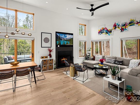 Discover this extraordinary mountain modern retreat, located less than 10 minutes from the heart of Downtown Hendersonville! Built in 2022, this pristine home blends impeccable craftsmanship with contemporary design and everyday functionality. This home boasts an open floor plan flooded with natural light—ideal for entertaining and flowing seamlessly onto a spacious deck that invites outdoor gatherings. The main level features a luxurious en suite bedroom, offering comfort and convenience on the first floor. Upstairs, two private guest rooms provide a peaceful retreat for family or visitors. The fully finished basement adds incredible versatility, featuring a large recreation room with a full en suite bath—perfect for a home office, gym, media room, or play space. With modern finishes, thoughtful layout, and a prime location, this home offers the perfect blend of mountain serenity and city convenience. Don’t miss this exceptional opportunity!