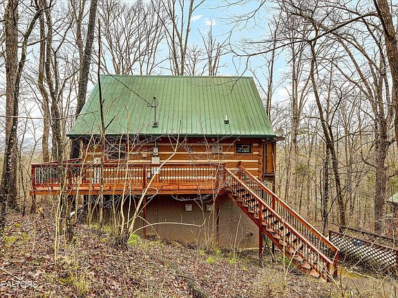 Escape to the tranquility of ''Rocky Top'', a secluded cabin nestled in the serene Timberwinds Resort of Townsend, Tennessee on the peaceful side of the Smoky Mountains. This charming retreat boasts a cozy 1-bedroom, 1-bathroom layout with a loft area for additional sleeping, accommodating up to 4 guests comfortably. Step inside to discover an inviting open-concept living space seamlessly merging the living room and kitchen, adorned with vaulted ceilings that amplify the sense of spaciousness. A striking stone gas-log fireplace in the living room sets the perfect ambiance for intimate gatherings or quiet evenings. The well-appointed kitchen is a chef's delight, featuring stainless steel appliances, granite countertops, and a convenient island for meal preparation and casual dining. Retreat to the main-level bedroom, offering direct access to the covered deck where you can unwind in the soothing waters of the hot tub while soaking in breathtaking views of the Smoky Mountains or enjoy the wonderful whirlpool tub with a custom stained glass window. The full bathroom boasts modern updates, including a walk-in shower, updated vanity, and granite countertops, ensuring both comfort and style. Outside, the covered porch beckons you to bask in the beauty of nature, with ample space for relaxation and al fresco dining against the backdrop of stunning mountain vistas. The highlight of the outdoor space is undoubtedly the rejuvenating hot tub, perfect for indulging in blissful moments under the starlit sky or during cooler evenings. The seller has spared no expense in enhancing the outdoor experience, investing over $35,000 in deck renovations and tree clearance to optimize the panoramic views. The community offers a wonderful pavilion with gas grills for you and your guest, and a pool for owners and guests! Whether you seek a romantic retreat or a peaceful getaway with loved ones, Rocky Top offers an idyllic haven where you can reconnect with nature and create cherished memori