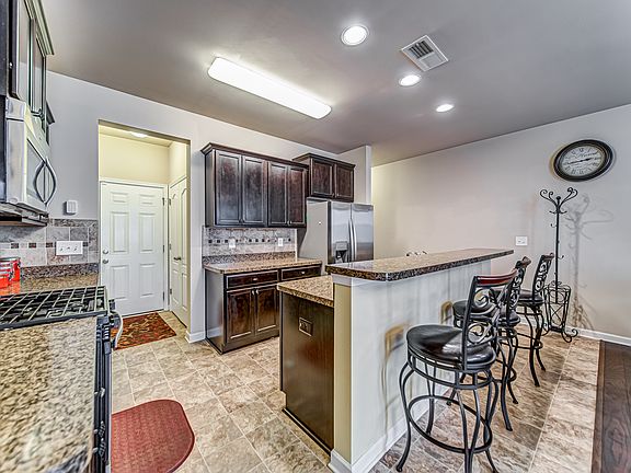 - Kitchen Features: Breakfast Bar, Cabinets Stain, Laminate Counters, Pantry, View to Family Room, Kitchen Island, Pantry Walk-In