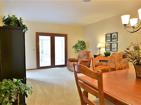 Bask in the luxurious elegance of this expertly kept Cortland condo. Featuring two floors of stunning living space; it's one you won't want to miss. Beautiful landscaping draws you in with colorful flowers and shady foliage. Scenic good looks continue out back as a fantastic rear patio awaits with a 30 x 12 deck area 2017 and concrete walkway to the attached 2 car garage; or simply enjoy the views indoors from the enclosed sunroom. Inside, high-quality craftsmanship and modern material choices run from room to room as you enjoy the multitude of updates. Wood pattern tiled flooring spans the galley style kitchen where rich wooden cabinetry is accented by stainless appliances and granite counters. Bartop casual dining sits opposite of an eat-in nook while a robust, sun filled family room opens to reveal towering skylights that fill the area with sunshine. An offset spacious living room joins both sunroom access and formal dining. The main hall encompasses two bedrooms and an updated main full bathroom 2019. The guest bedroom is nicely sized and offers great closet space. The gorgeous master suite includes a walk-in closet and a private full bath updated in 2019. Downstairs, entertainment is the name of the game with a breathtaking theatre room and a substantial bar with rec area. Additional features include: roof & skylights 2011, asphalt driveway 2015, furnace & AC 2016, sump pump 2015 with battery backup 2019, and so much more! Nothing left to do but move in!