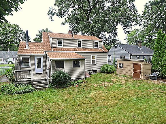 A Great Opportunity: Three bedroom cape in the Tatham section of West Springfield. Primary bedroom and full bath on the main level, two bedrooms and a half bath upstairs. Hardwood floors in the living, dining and primary bedrooms. Large entryway off the kitchen leads to the driveway. The three season room and deck look over the fenced back yard with a storage shed and gardening space. Many possibilities in the finished basement.