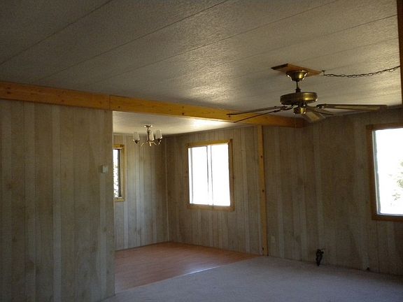 REO Bank Owned::: Main home is a mobile home with 3 bedrooms, 1 bath, kitchen, two large sun porches both front and rear. There are no appliances in the main mobile--Not sure if the mobile is on an 8 point or pier and post. In addition there is a large shop 40X 60 built in 2004. In the large shop, you will find a guest quarters with living area, large bedroom, bath and half bath, all sheet-rocked. In the shop portion, you will find a half bath and a large shop.