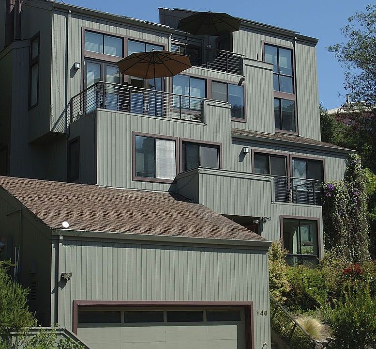 This elegant architect-designed residence, originally built in 1994 and updated several times since, is sited in the upscale Claremont neighborhood, and set on a quarter acre of sun-drenched south-facing hillside affording views of beautiful Vicente Canyon and the San Francisco Bay beyond. The flexible and casual floor plan of this home offers an ideal balance of indoor and outdoor living and entertaining plus home offices for two. Extensive upgrades include a fourth bedroom, a luxurious master bath, full-length accordion doors in the living room that open onto a generous front deck that overlooks the Bay, an artfully designed back deck with fire pit surrounded by native redwoods and oaks, gourmet kitchen appliances, new custom-designed railings inside and out, additional wood floors, new carpets, fresh new interior and exterior colors and lush landscaping and plantings outside. This very environmentally-friendly house has 5.7kw of solar electric panels on the roof, electric car charger, an "endless-capacity" tankless hot water system, UV-efficient E3 double-pane windows throughout, a low-flow, five-zone automated irrigation system that covers the entire property and nourishes very productive citrus trees. Neighborhood Description This lovely neighborhood, just east of Elmwood and west of the Claremont Hotel, has the grandest and most expensive homes in Berkeley. The Key Route commuter trains once ran as far as the luxury Claremont Hotel. The end of the line was right between the tennis courts of the Berkeley Tennis Club. Claremont has several little shopping sections within walking distance. Claremont and The Uplands is home to Semifreddi's Bakery, Star Market, Jutta's Flowers (a beautiful flower store), and The Craftsman Home. The other shopping areas include Domingo Avenue with Peet's Coffee, Rick and Ann’s restaurant, and the incredible Fournée Bakery just across from the Claremont Hotel, with the charming stores and eateries of College Avenue another short walk from there.