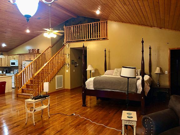 Looking for a great place to relax, This may be the perfect place for you. With great views of pilot Mountain. This open floor plan would make a great vacation home or a vacation rental. Home has two beds for sleeping, one on the main floor and other in a loft. Large kitchen and living area for entertaining. Sit on the covered back porch drinking Coffee and looking at beautiful views in all directions. Home is very spacious. Home features pine, tongue and groove and hardwood floors Exterior has cedar siding and a metal roof