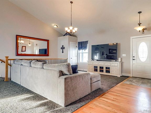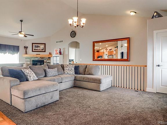 WELCOME to this immaculate 4 bed / 3 bath RANCH with FINISHED Basement! This 2 acre property is fantastic. Everything you need is on the main floor plus you get the bonus of extra basement space. Home includes a large Kitchen with Island, SS appliances, tile back splash & TONS of cabinets! Dining room and living room adjacent to kitchen with Gas fireplace and an abundance of natural light. Primary bedroom has attached ensuite w/ huge custom walk-in shower & spacious walk- in closet. Recently finished basement features another bedroom and bathroom as well a rec area and bonus space. Whole house has Newer matching carpet! Beautifully Landscaped front and back yard includes back yard full fencing with added privacy fencing for the Hot Tub, sprinkler system and drip system to trees, concrete walk-way & Spacious covered patio! BACKS TO OPEN SPACE so the over 2 acre lot feels even bigger! Work from home with ease as property is wired with Xfinity High Speed internet! Oversized 3 car attached garage (their trucks fit!), RV parking and Parking Pad. Small town living at its best! MOVE IN READY HOME. *MUST SEE*