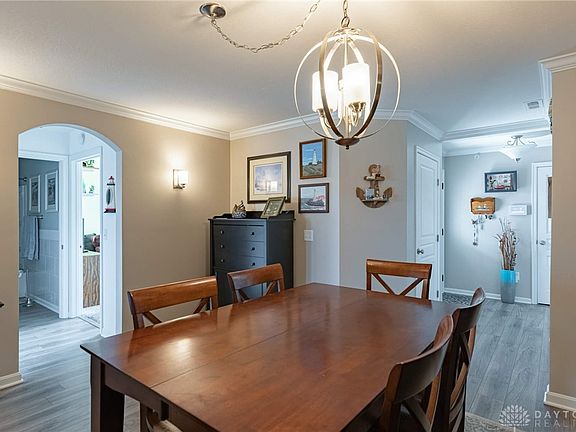 This beautiful condo located on the first floor with no steps has the perfect location with a gorgeous view of the pond behind it. Sit out back on your 12x10 ft. covered patio and take it all in. Split bedroom design, perfect for your guests. It has had some very nice upgrades done to it by the owners, including built-in cabinetry in the dining room and new lighting in most rooms. Wonderful kitchen with a large island, tile backsplash and granite countertops. Reverse osmosis. Wainscoting and tile on the walls in primary bath. Tile on the walls in the hall bath. Luxury vinyl flooring throughout. Carpet in the bedrooms. Attached garage with work area. Absolutely move in condition. All you need to do is unpack. Community includes 2 pools, clubhouse with a party room that you can rent, fitness room, playground and walking paths. This subdivision has it all. Better hurry on this one.