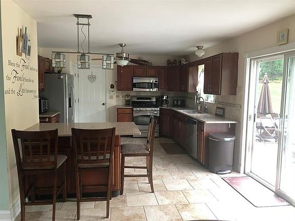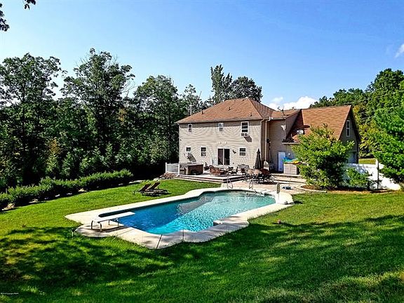 Colonial home on 1.6 acres of land outside community with 4 bedrooms, 3, 5 baths, exotic hicory wood floors throughout the house and fully finished walk out basement for extra entertainment area with Media Room, Wet Bar, Game Room and Gym Area. Master suite with walk in closet. 3 types of heat source: electric baseboard, propane gas fireplace and wood stove in basement. For those who love outdoor live: Fenced in yard with private ATV dirt bike trail, outdoor pool, 1 2 basketball court. 2 car garage with extra shelf for storage. Close to Rt 80, shopping, Mt. Airy Casino, minutes away from water parks: Kalahari Resort, Camelbeach, Aquatopia, Camelback Skiing resort, state parks, water sports, hiking, fishing, hunting and some much more.