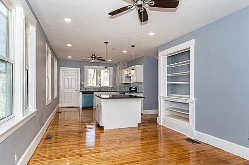 - Kit Dscrp: Flooring - Hardwood, Countertops - Stone/Granite/Solid, Cabinets - Upgraded, Kitchen Island, Stainless Steel Appliances, Open Floor Plan, Recessed Lighting, Remodeled, Lighting - Pendant