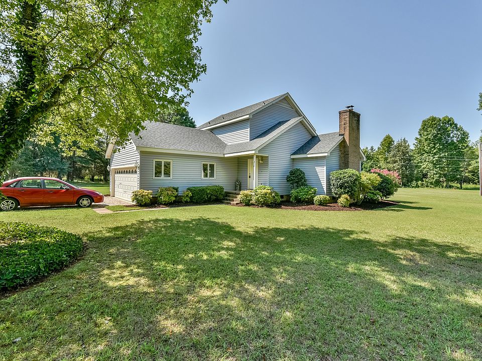 Welcome home to 146 Woodwind Drive! This 3 bedroom, 2-story home sits on a desirable 2 acre cul-de-sac lot – just minutes from retail, restaurants and I-77! This move-in ready home offers the highly sought after 1st floor guest suite floor plan in addition to solid wood paneling in the great room, newly installed plush carpeting and an oversized 2 car garage! This home exudes charm! It has a well maintained vinyl exterior with covered front porch, a 2 car garage, and sits on a pristine, flat, 2 acre lot with loads of trees and green space! Step through the front door and into the foyer featuring newly installed plush carpeting. Walk further into the home to the open great room which possesses solid wood wall paneling and a wood burning fireplace with blower to help heat your new home. Sliding glass doors lead you to the home’s deck to overlook the fantastic acreage that this home offers. The adjacent kitchen features lovely wood cabinetry, durable laminate flooring, laminate countertops, plus a ceiling fan/light combination and ample space for an eat-in breakfast area that has a chair rail and chandelier! The first floor guest suite has the newer carpeting and ceiling fan, plus a great bathroom that has been redone to include a ceramic tile stand up shower that is handicapped accessible. On the second level of this home are two additional bedrooms, with newer carpeting, ceiling fans and walk-in closets, plus en suite bathrooms. Each bathroom has a single vanity with shower/tub combination and durable vinyl flooring. (Special note: This home had its roof replaced in 2011 and HVAC replaced in 2013.) A home with all of these desirable features will not last long - now is your chance to own a great home in Rock Hill, SC! Call us today for a private showing! 704-705-7036.
