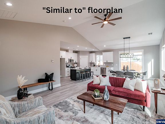 BEAUTIFUL, NEW 1.5 story home with modern style & elegance. From entry, luxury plank floors lead into open living/dining where you’ll enjoy the spacious interior, ultra-bright finishes & vaulted ceiling! Inspired gourmet kitchen comes w/soft close cabinets, quartz countertops, stainless steel appliances, enclosed pantry and oversized island w/eating bar. Primary bathroom ensuite w/tile shower and floors, built-in shelving & walk-in closet. Custom controlled heat/AC in EVERY living space. Room for RV+shed.